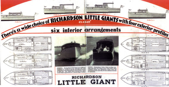 Imagine our excitement later that summer, when a trip to Clayton, N.Y.'s Antique Boat Show had us browsing in their flea market section, and we found an original brochure for 1935 Richardson's Little Giants! It was obvious that this boat was "Profile 1". During the restoration John skillfully crafted it to be a "Profile 2", giving the helm area a windshield, and a roof over the salon.