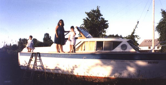 The Hendren's first wooden boat was this Chris-Craft. After 4 years of (off & on) restoration, and with a young family requiring frequent attention, the boat was sold - with the intention that "someday soon" we'd go looking for another boat. John had completed all of the woodwork, including some plank and rib replacement, a new transom and deck, as well as a mahogany insert along the top of the hull. We noted when stripping the transom, a board underneath had a scripted name, “Meanderer”. We've lost track of its whereabouts over the years. The last we knew, the motor had been restored, and it was in the stages of reassembling the interior.