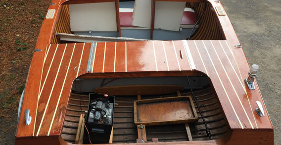 To complete this remarkable restoration, the boat was paired with a beautifully restored vintage Teeny trailer and powered by an iconic 1961 Mercury 850 “Tower of Power” motor. The result: a one-of-a-kind Peterborough Royal, brought back to life in style.