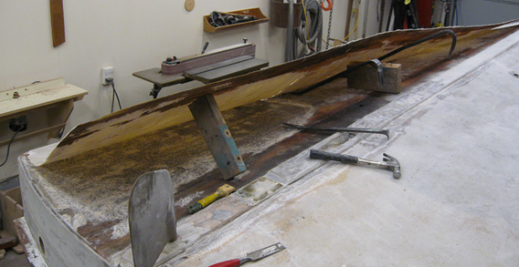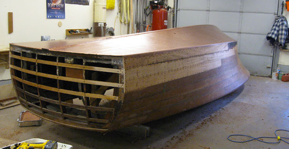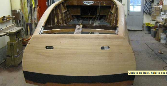 Scamp III resides with the current owners on an island on Stoney Lake. She was refurbished a number of years ago, giving her a fibreglass bottom which, at the time, served its purpose. Now, after regular use, Scamp III is ready for a complete restoration which will involve returning her bottom to a traditional double plank bottom. The fibreglass job had preserved the boat's bottom to perfection, however the workmanship was very poor, and had been brought up lower sides of the hull much further than necessary. Scamp III Is now looking shiny and new, and is back enjoying those Stoney sunset cocktail cruises!