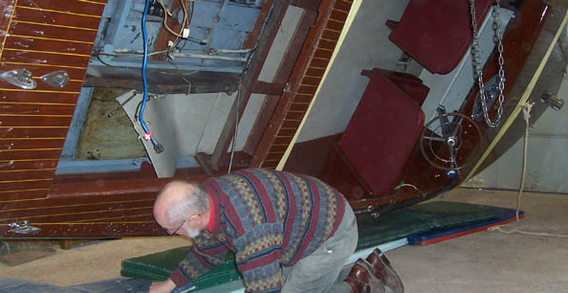 Twilight had facelift and engine work in 2003 at Clarion Boats - Campbellford, Ont. The owners decided it would be beneficial for their type of boating to have it be a completely dry boat. So, discussions with John in the fall of 2006 resulted in Twilight coming into John's Little Boat Shop for the winter of 2007 for an epoxy bottom. While she was in the shop a few fresh coats of varnish were applied.